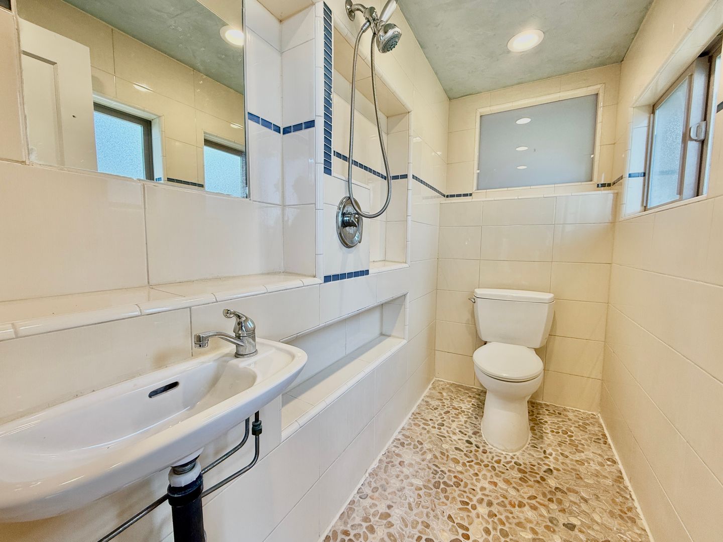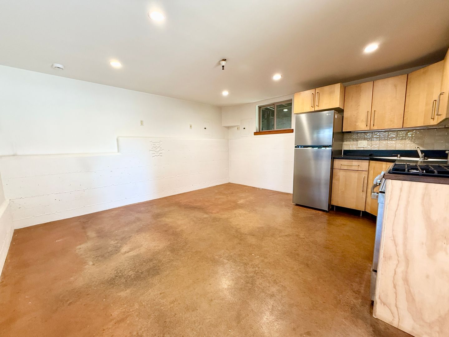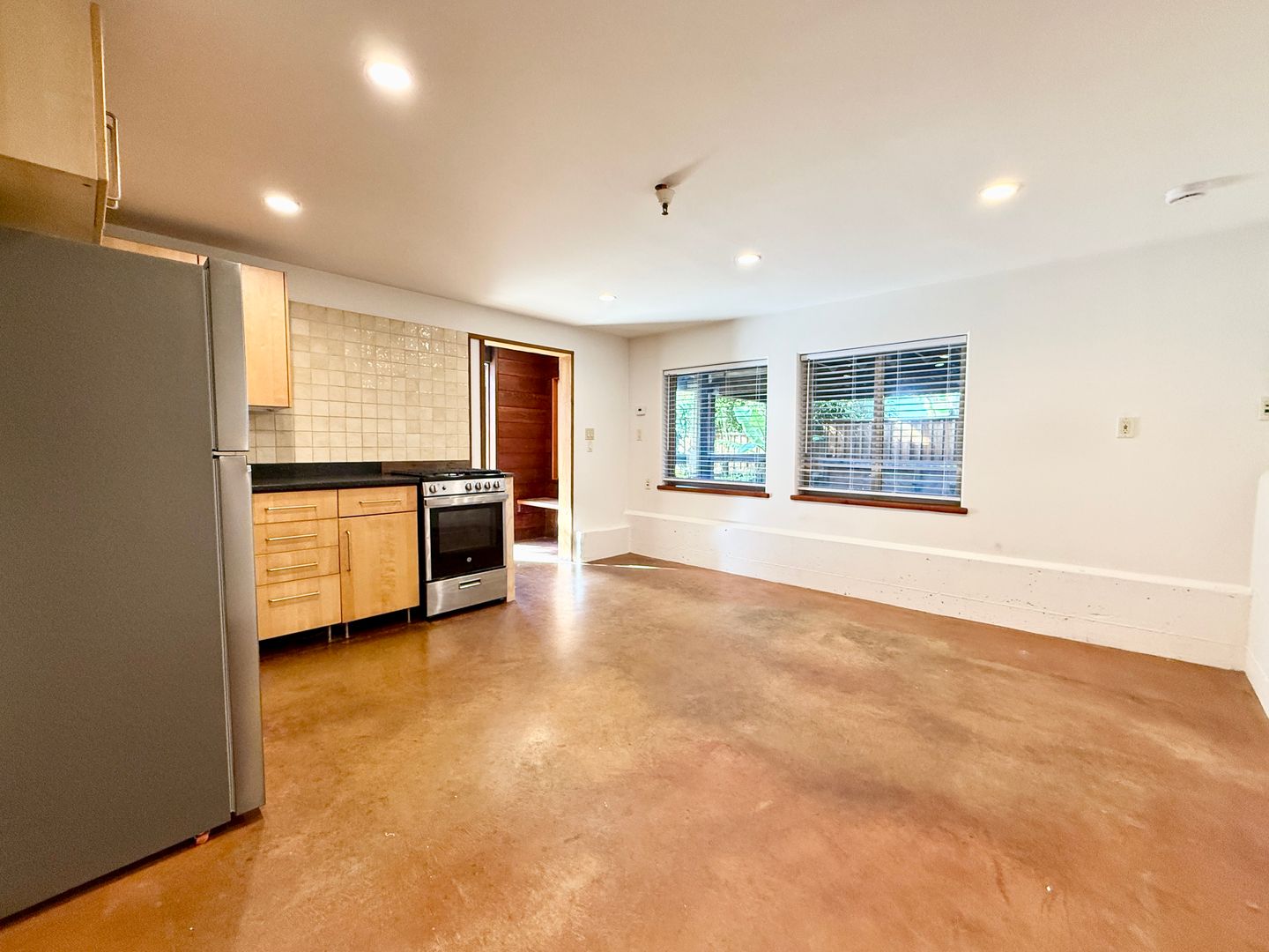 This cozy bottom floor studio was recently refreshed and boasts radiant heated concrete floors, designated washer and dryer, outdoor space and brilliant ocean views. The kitchen features a refrigerator, gas range and cabinet space. There's additional storage available, a covered patio area, one designated driveway space and all utilities are included!